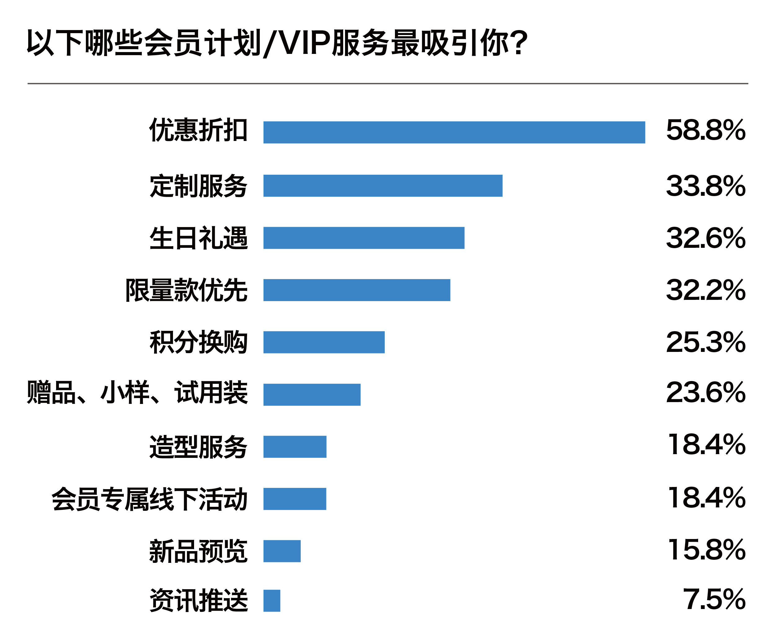 品牌會(huì)員服務(wù)方面,值得品牌們注意同樣是“個(gè)性化定制”和“造型服務(wù)”,報(bào)告顯示,分別有33.8%和18.4%的男性消費(fèi)者希望品牌能夠提供這兩項(xiàng)會(huì)員服務(wù)。