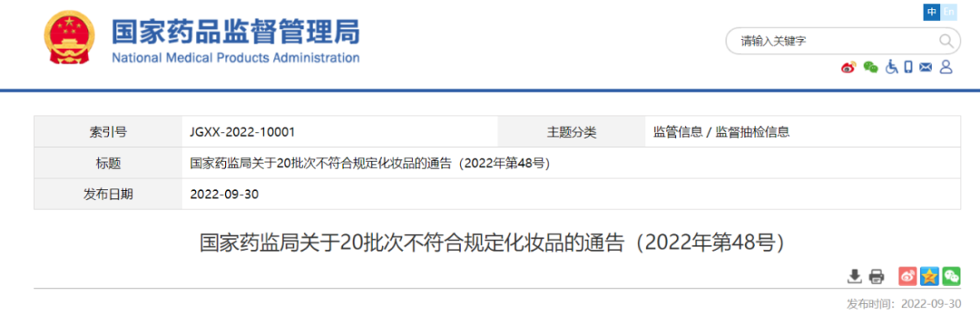 近日, 藥監(jiān)局發(fā)布關(guān)于20批次不符合規(guī)定化妝品的通告(2022年第48號)。通告稱,在2022年化妝品監(jiān)督抽檢工作中,經(jīng)廣西壯族自治區(qū)食品藥品檢驗所等單位檢驗,標示廣州卡迪蓮化妝品科技有限公司生產(chǎn)的卡姿蘭美顏大咖奢護BB霜 (01粉嫩淺膚色、02典雅自然色);標示株式會社資生堂生產(chǎn)、資生堂(中國)投資有限公司經(jīng)銷的安熱沙水能戶外清透防曬乳;標示杭州優(yōu)姆品牌管理有限公司經(jīng)銷的香蒲麗保濕煥采防曬霜;標示廣州邦婷化妝品有限公司生產(chǎn)的覓見肌底隔離防護乳;標示廣州市采潔化妝品有限公司生產(chǎn)的采潔防曬霜等20批次化妝品不符合規(guī)定。
