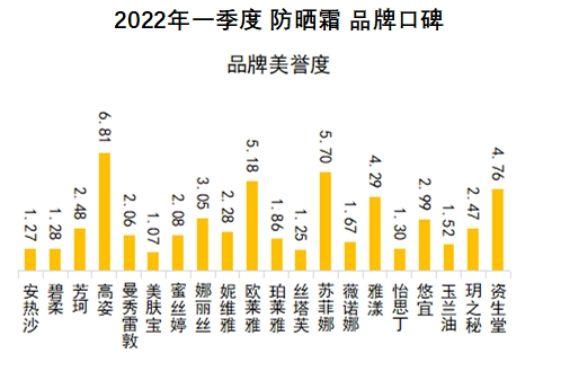 品牌美譽(yù)度方面,高姿、蘇菲娜、歐萊雅位居前三。資生堂、雅漾、娜麗絲、悠宜、芳珂、玥之秘、妮維雅分列第四至第十位。