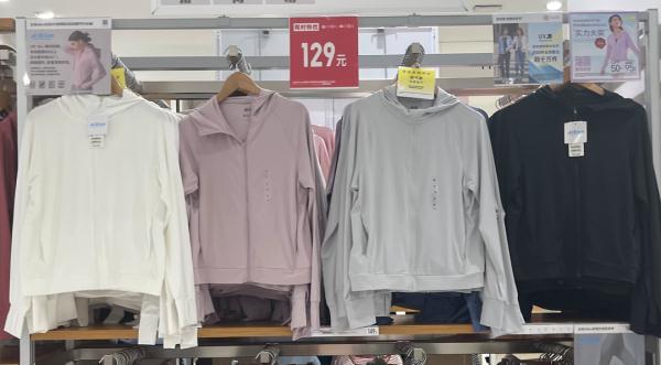 “這幾件現(xiàn)下銷量都很好,輕薄透氣,這兩天還有活動,價格很合適?!庇浾咴诒本┠炒笮蜕虉龅倪\動服飾專區(qū)走訪時發(fā)現(xiàn),某品牌銷售人員極力推薦的幾款防曬服,其吊牌上只寫明了衣服面料、防紫外線功能等信息,并未標注具體的防曬指數(shù)信息。