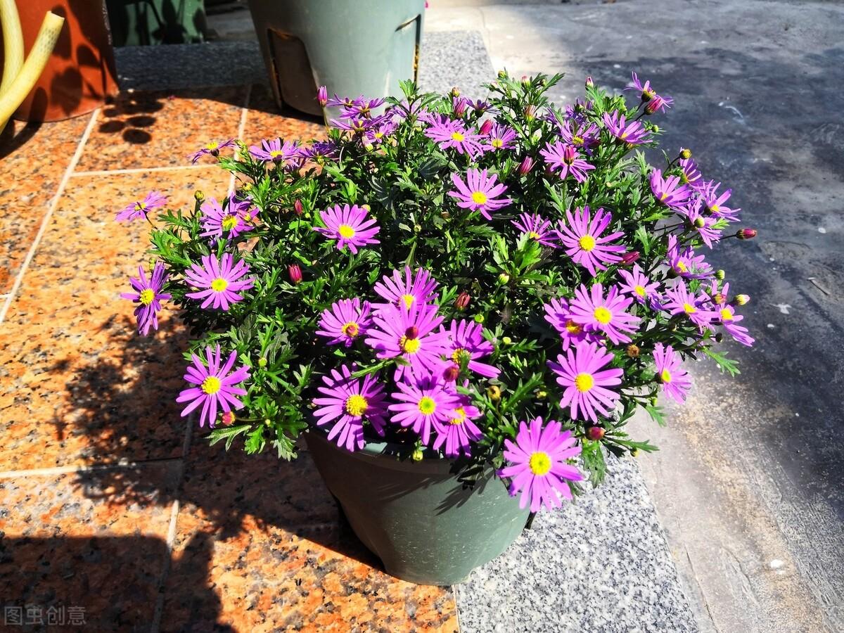 姬小菊姬小菊是再普通不過的草花,養(yǎng)護(hù)得當(dāng)可以四季開花。姬小菊枝條細(xì)軟,整體比較低矮,養(yǎng)在光照充足的環(huán)境中,開出淡藍(lán)或者淡紫色的小花,給人一種清新自然的感覺。春天栽種的姬小菊,可以一直開到秋天。而且春天姬小菊生長速度快,容易長成一大棵,爆花。
