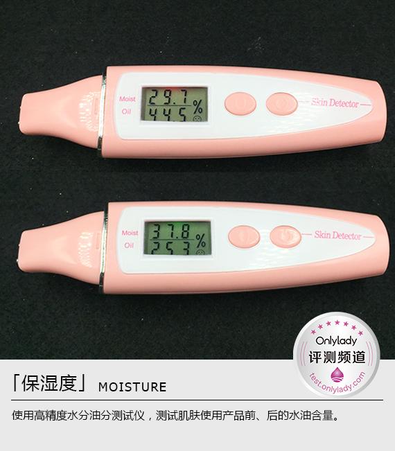 使用前肌膚含水量僅為29.7%,油分高達44.5%,水油極不平衡。使用防曬乳后肌膚快速補充養(yǎng)分,含水量提升至37.8%,油分有所下降。重現(xiàn)水潤健康的保濕狀態(tài),偏干的皮膚也可以放心使用。