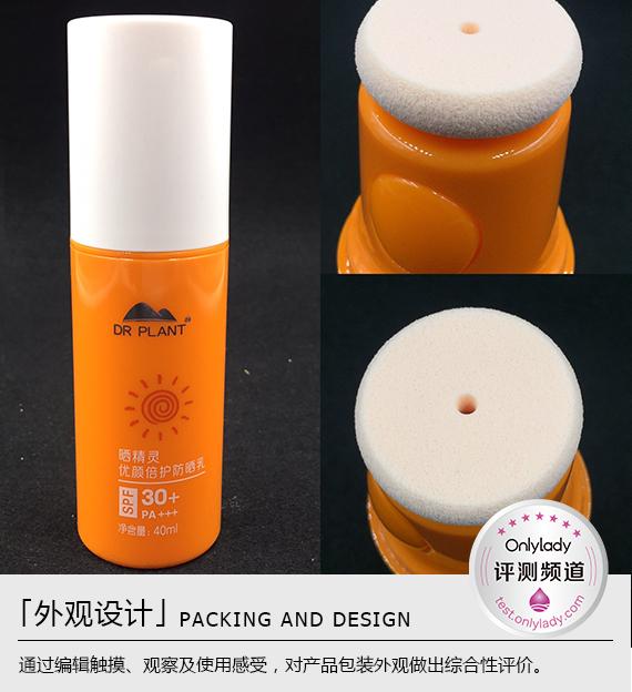 亮眼的橘色塑料包裝瓶小巧輕便,可以隨時隨地帶在身上。瓶口為DR PLANT植物醫(yī)生的氣墊出液口方便涂抹。按壓式出液,可大限度的節(jié)約用量,便于掌握用量。瓶身的防曬標示SPF30+/PA+++足夠滿足日常防曬所需。
