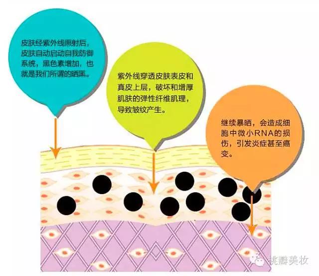 UVA區(qū):長(zhǎng)波紫外線(xiàn),可穿透層,使皮膚曬黑并,導(dǎo)致脂質(zhì)和膠原蛋白受損,引起皮膚的光老化甚至皮膚癌;