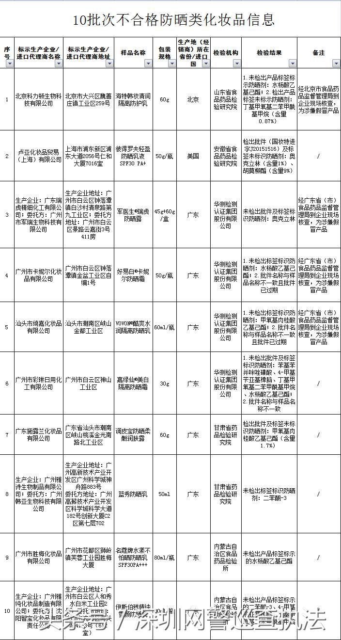 近日,食品藥品監(jiān)督管理總局在官網(wǎng)公布了10批次不合格防曬化妝品。