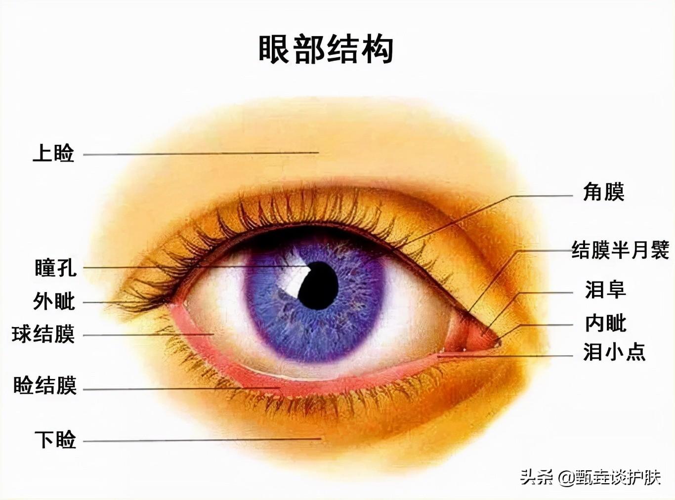 在和小伙伴們討論眼部防曬時(shí),發(fā)現(xiàn)很多小伙伴經(jīng)?;煜鄄考∧w和眼周肌膚。甄垚找了一張眼部結(jié)構(gòu)圖,如下圖: