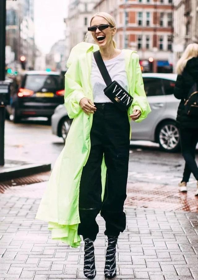 熒光色的防曬衣也是近幾年的新品,相比淺色系更加明艷亮眼,但飽和度高的色彩比較難駕馭,穿的不好就會(huì)很顯土味。熒光綠的長(zhǎng)款防曬衣寬松大氣,內(nèi)搭白t不會(huì)出錯(cuò),下裝用黑色長(zhǎng)褲來中和色彩,整體看起來就和諧許多。