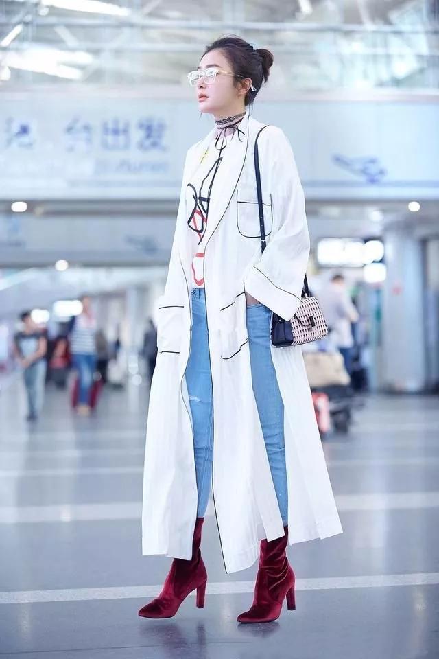 秦嵐的這一身則把防曬衣穿出了t臺(tái)走秀的既視感,在氣場(chǎng)和搭配上都是滿分。同樣是黑色鎖邊的白色防曬衣,下擺兩片式的開叉設(shè)計(jì)讓單品看起來個(gè)性十足,藍(lán)色牛仔褲和紅色長(zhǎng)靴的配色為整體增添了亮點(diǎn),滿滿的女王氣場(chǎng)。
