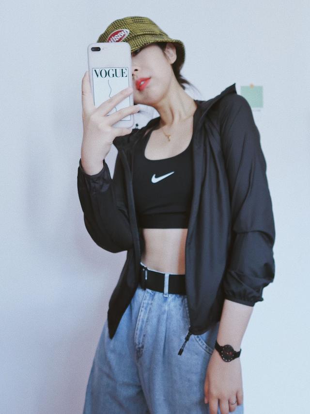 黑色防曬衣一般不作為人們的,但穿起來是真的帥,并且防曬效果比淺色要好。內(nèi)搭黑色簡(jiǎn)約短款背心,露出大片的膚色打破黑色的單調(diào),下裝選擇寬松牛仔褲,滿滿的街頭嘻哈風(fēng),還可以防曬。
