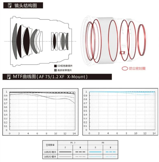唯卓仕 AF 75mm F1.2 XF 采用日本進(jìn)口 HOYA 特殊硝材,采用 11 組 16 片光學(xué)結(jié)構(gòu),4 枚高折射率鏡片和 3 枚 ED(低色散)鏡片,有減少影像邊緣可能出現(xiàn)紫邊的情況,實(shí)現(xiàn)媲美 APO 級(jí)的色散矯正。此外,鏡頭還采用了高清納米多層鍍膜技術(shù),有減少入射光產(chǎn)生的眩光和鬼影,獲得清晰銳利的影像。