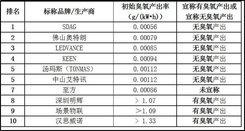 對(duì)于宣稱(chēng)無(wú)臭氧燈的產(chǎn)品:初始臭氧產(chǎn)出率應(yīng)低于0.05g/(kW·h)。