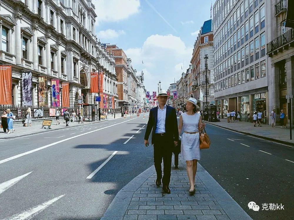 這是拜訪客戶穿著,平時(shí)是沒(méi)穿外套戴帽子,這幾天正好倫敦接近30度高溫。