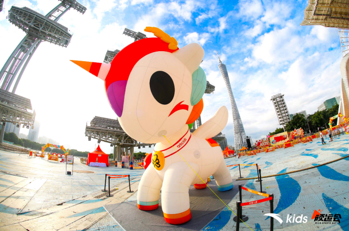 2019安踏兒童頑運會廣州站現(xiàn)場的6米高TOKIDOKI獨角獸