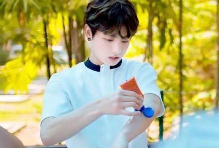 之前在拍攝,也有粉絲路透表示,柾國(guó)在臉上厚厚地涂上了白白的防曬霜才出門(mén)~