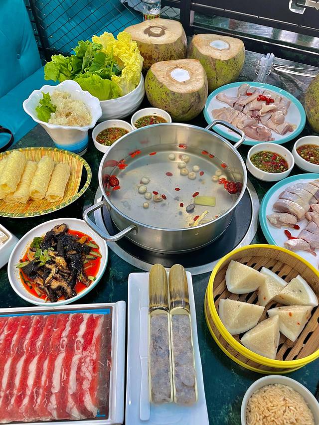 不同于其他地方,這里的鍋底都是用的椰子水,三個(gè)椰子作為鍋底,煮出來(lái)的湯特別鮮,是在其他地方是不到的哦