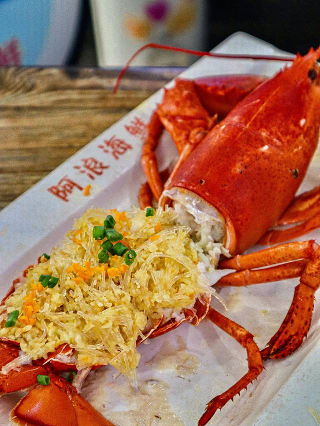 我的天啦,這大龍蝦端上來(lái)的適合感覺(jué)比我臉都大,蝦肉特別足,清蒸的做法保留了蝦原始的味道。
