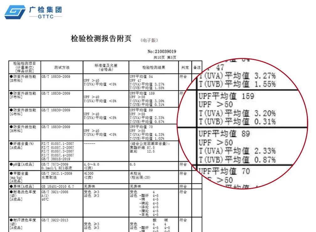 這件防曬衣的防曬指數(shù)經過認證,UPF值高達50+,UVB、UVA平均值也達到0.31%、3.20%。高過市場的很多同類產品!