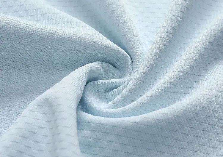 它采用美國杜邦(DuPont)公司的LYCRA技術,加入了萊卡這種面料后,讓衣服順滑有涼感,你看這密集的網(wǎng)眼,瞅著就涼快。