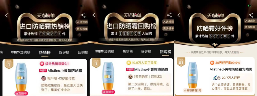 MISTINE專家團(tuán)隊(duì)不斷通過科技突破,形成強(qiáng)大產(chǎn)品矩陣的同時(shí),亦做到了海洋友好。MISTINE踐行綠色發(fā)展的理念,保護(hù)生物多樣性,防曬成分中不含有害海洋的物質(zhì),守護(hù)藍(lán)色海域,讓海洋生物盡情釋放生命活力。出眾的產(chǎn)品力使得MISTINE備受消費(fèi)者青睞,并在眾多品牌中脫穎而出。2022年MISTINE全新升級防曬系列一經(jīng)推出就獲得了良好口碑,并且榮登天貓進(jìn)口防曬霜熱銷榜、好評榜、回購榜三榜。