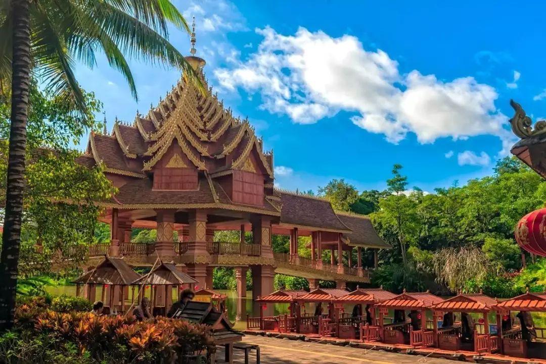 西雙版納傣族園是中國旅游知名品牌、AAAA級旅游風景區(qū),座落橄欖壩,南傍瀾滄江,北依龍得湖距西雙版納州府景洪市27公里。是西雙版納州集中展示傣族宗教、歷史、文化、習俗、建筑及服飾飲食等特色的旅游風景區(qū)。主景區(qū)由曼將(篾套寨)、曼春滿(花園寨)、曼乍(廚師寨)、曼嘎(趕集寨)、曼聽(宮廷花園寨)五個保存完好的傣族自然村寨為重要部分組成。