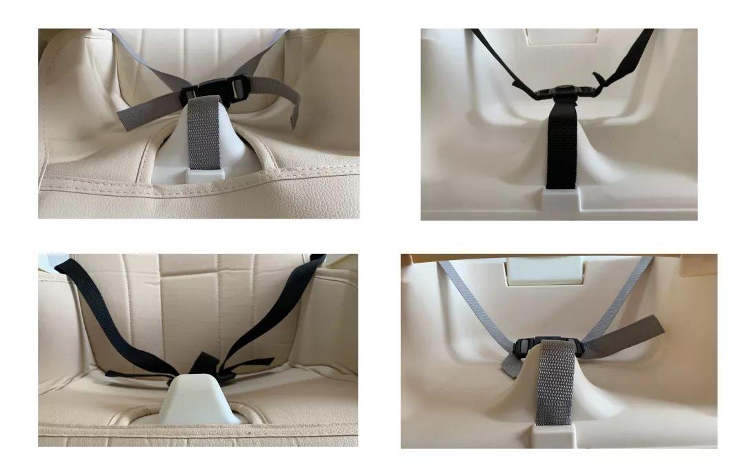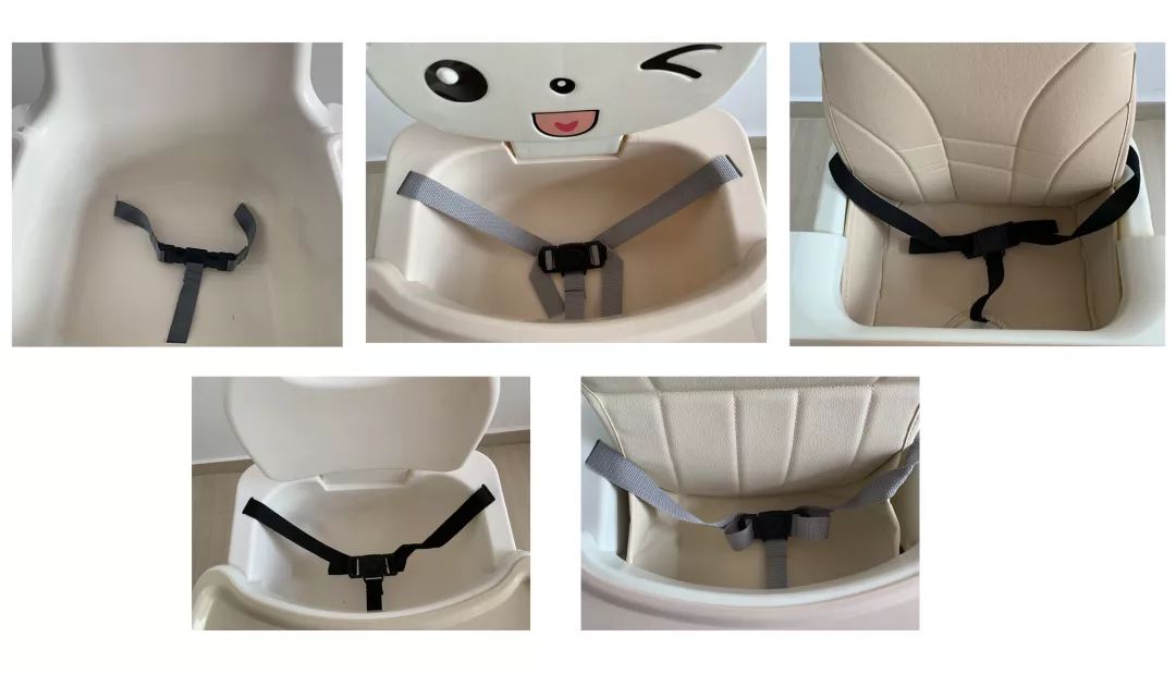 ①除勵步外,其他5款餐椅的帶均采用的是3點式設計,能夠約束寶寶的腰部和襠部,避免側翻或下滑。