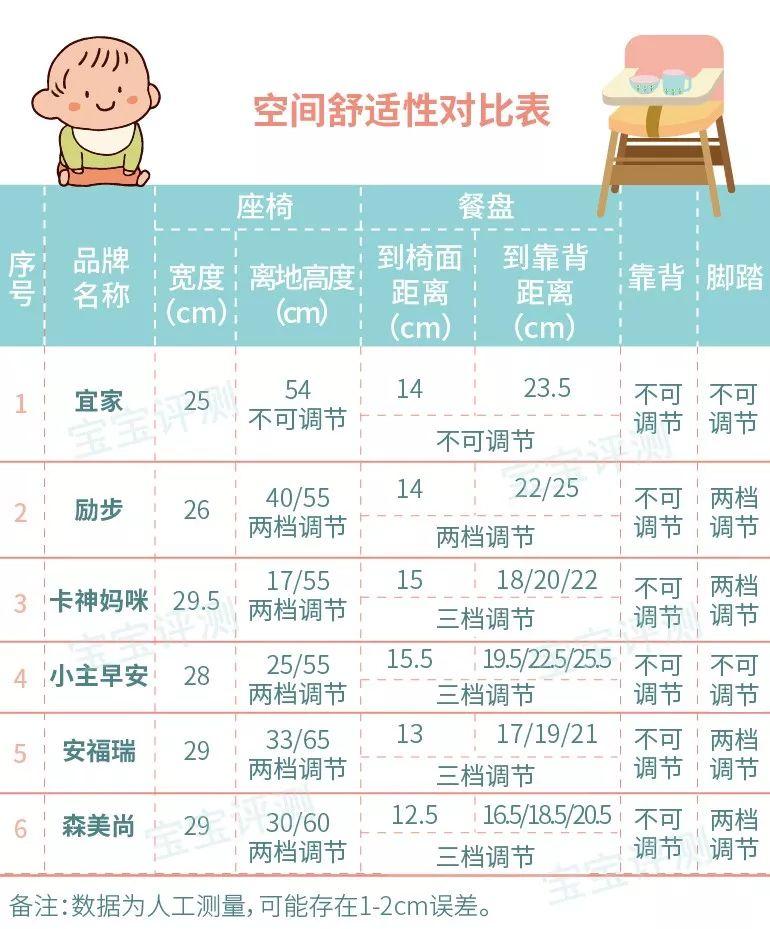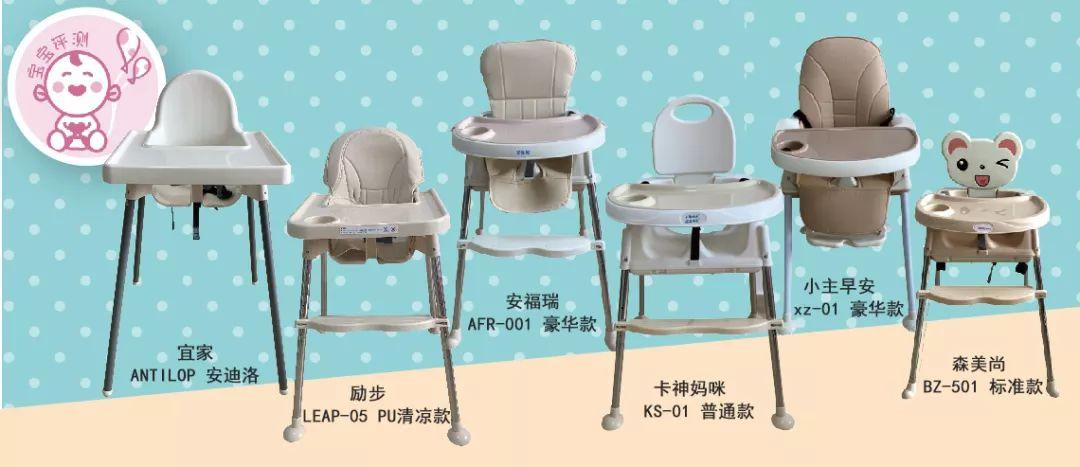 ②6款樣品均配有餐盤、靠背、帶、防滑柱;除宜家外,其余5款還配有腳踏。