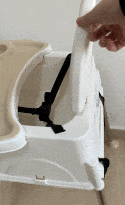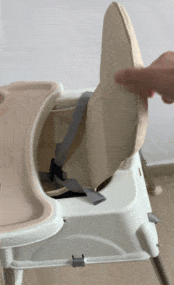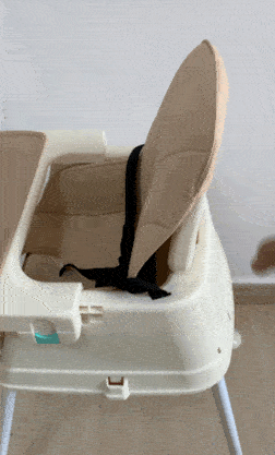 ③小主早安:座椅高度調節(jié)麻煩,需對餐椅進行拆卸和重新安裝;餐盤調節(jié)有些卡頓;靠背/腳踏不可調節(jié);帶為一鍵式,打開需稍用力;凈重量3kg左右,搬移較輕松。