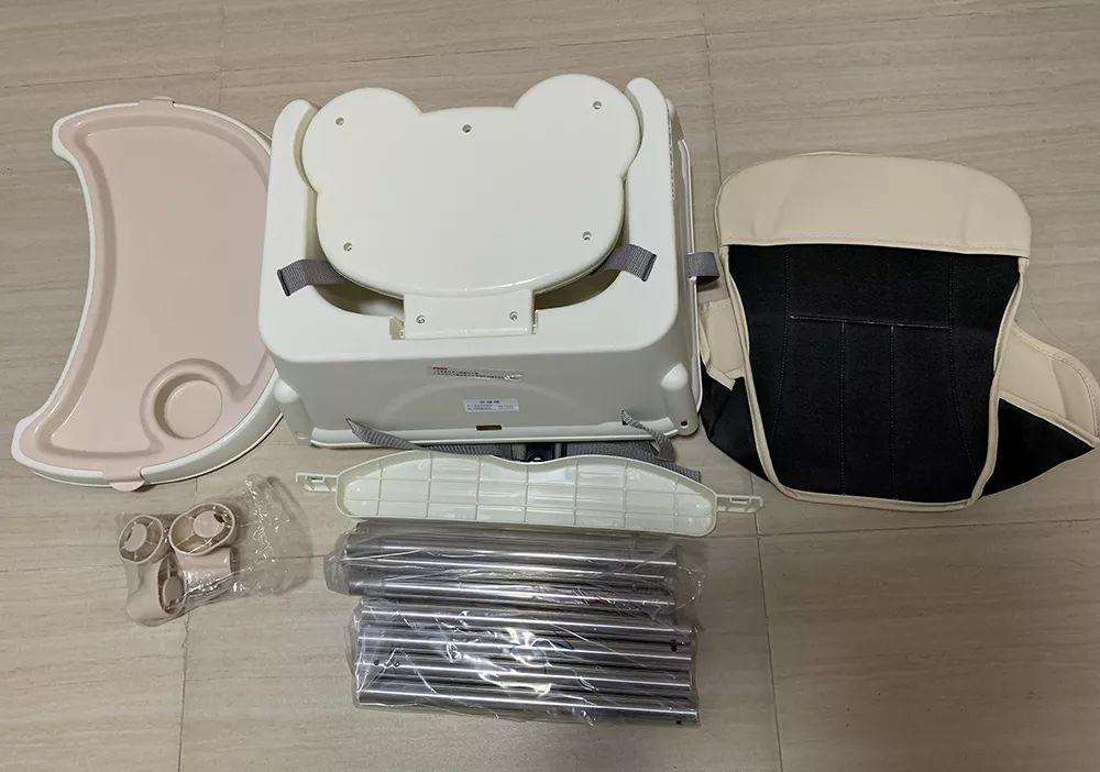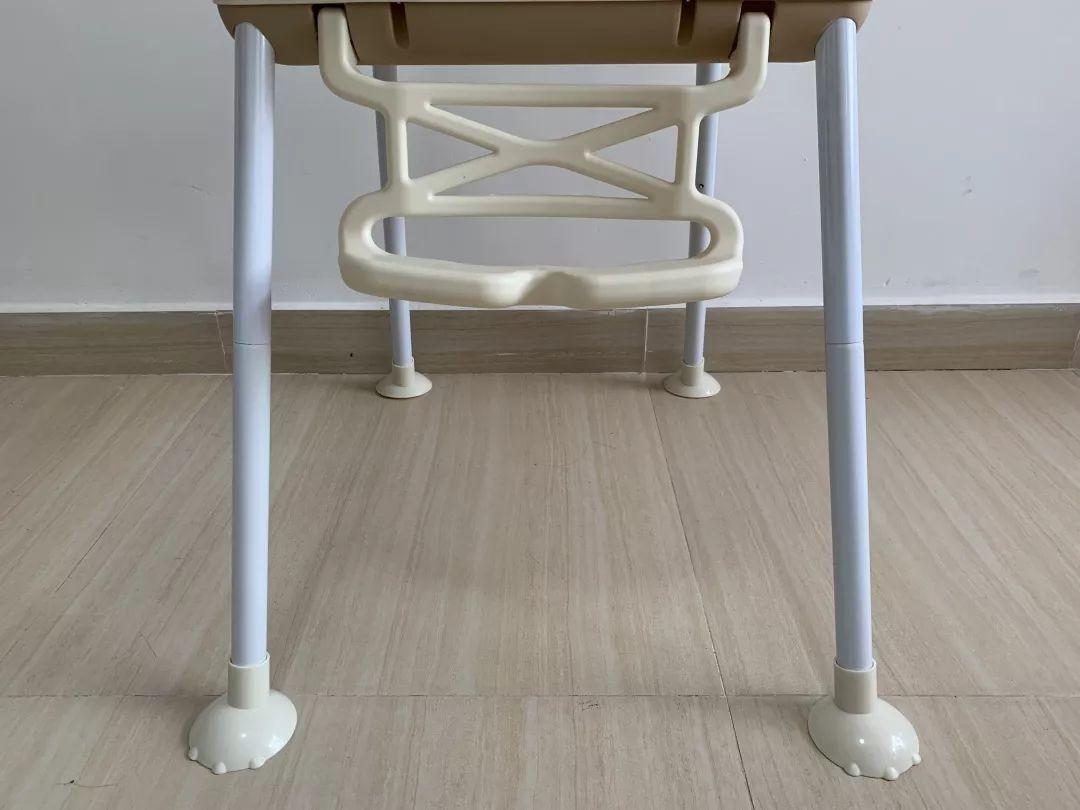 ②森美尚:座椅高度調節(jié)麻煩,需對餐椅進行拆卸和重新安裝;餐盤調節(jié)有些卡頓;靠背不可調節(jié);腳踏調節(jié)麻煩,需擰螺絲更換腳踏位置;帶為一鍵式,容易打開;凈重量3kg左右,搬移較輕松。