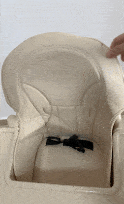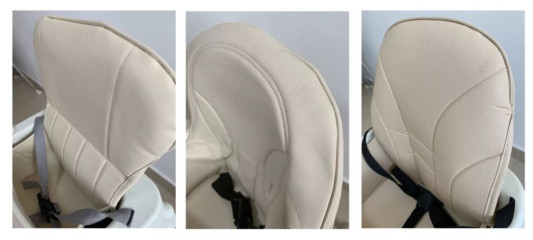 ⑥小主早安、勵步、安福瑞的靠背配有PU皮套,雖然比PP塑料材質更舒服一點,但皮革的味道較重,既影響用餐體驗,長期接觸還可能影響寶寶的健康。