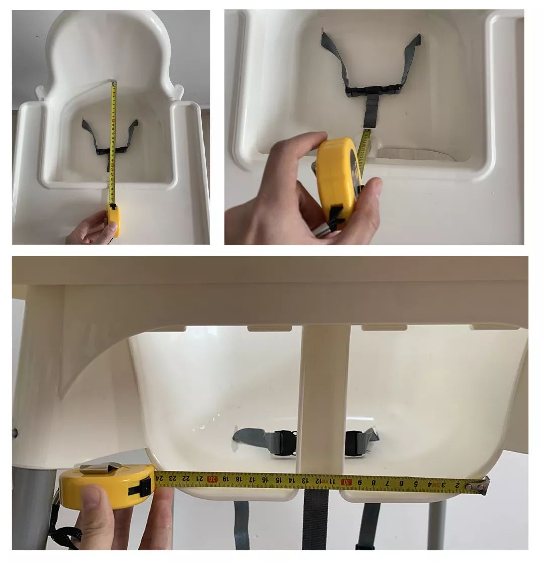 測評方法:測量并對比各款寶寶餐椅的座椅寬度/離地高度、餐盤到椅面/靠背的距離等,再對各款餐椅的調節(jié)功能進行比較。