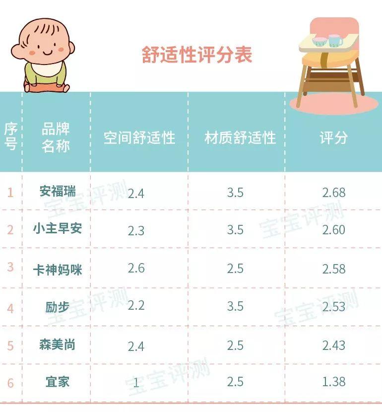 綜合以上2項測評,6款寶寶餐椅的舒適性綜合得分如下(滿分5分):