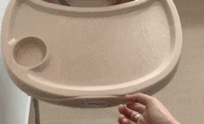 ⑤6款寶寶餐椅中,5款的餐盤設有單獨放杯子的杯格,也可以放一個小碗,一定程度上能夠保護杯碗不被寶寶打翻。只有宜家的餐盤沒有杯格。