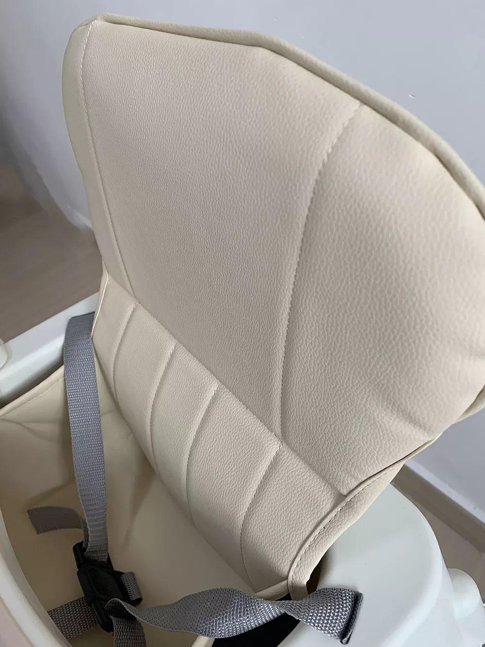 ②小主早安、勵步、安福瑞:配有PU皮套,比直接坐在PP塑料上要舒服一點,如果夏天熱了也可以拆下來。但3款餐椅的PU皮較薄,柔軟度、舒適度的改良實際上比較有限。