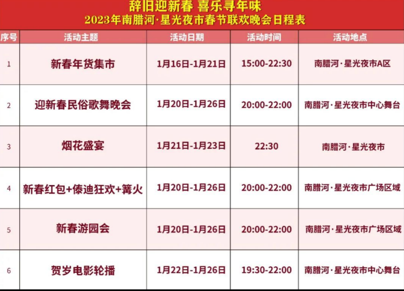 活動四:【2023年春節(jié)、州慶黃金周活動時間表】