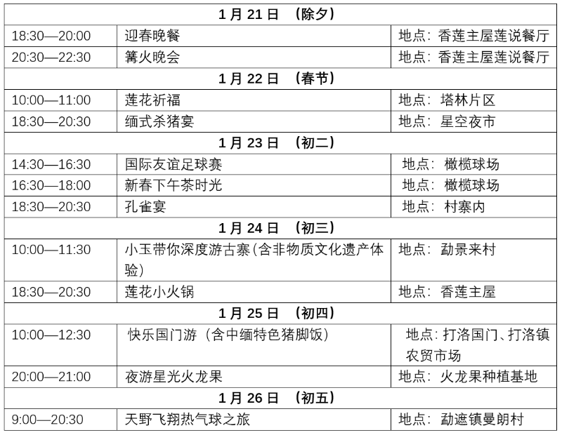 勐景來景區(qū)目前已恢復(fù)營業(yè),并在春節(jié)期間推出豐富活動,詳情如下:
