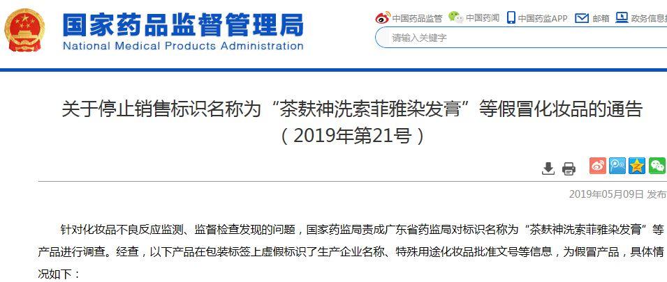 針對化妝品不良反應(yīng)監(jiān)測、監(jiān)督檢查發(fā)現(xiàn)的問題,藥監(jiān)局責(zé)成廣東省藥監(jiān)局對標(biāo)識名稱為“茶麩神洗索菲雅染發(fā)膏”等產(chǎn)品進行調(diào)查。經(jīng)查,相關(guān)產(chǎn)品在包裝標(biāo)簽上虛假標(biāo)識了生產(chǎn)企業(yè)名稱、特殊用途化妝品批準(zhǔn)文號等信息。