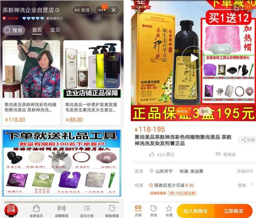 5月9日17:50,在藥監(jiān)局發(fā)布通告后的兩個多小時后,記者檢索發(fā)現(xiàn),“茶麩神洗索菲雅染發(fā)膏”和“夢希藍牌水洗雪膚身體膜”在電商平臺仍有銷售。淘寶網(wǎng)茶麩神洗企業(yè)自營店內(nèi),茶麩神洗索菲雅染發(fā)膏排在企業(yè)銷售榜榜首,本月已經(jīng)銷售879件。在一家名為“工廠品牌店”的店鋪中,品牌為“夢希藍”的“美白潔面乳”,在店家展示的產(chǎn)品信息圖片中卻標(biāo)示產(chǎn)品名稱為“水洗雪膚身體膜”。
