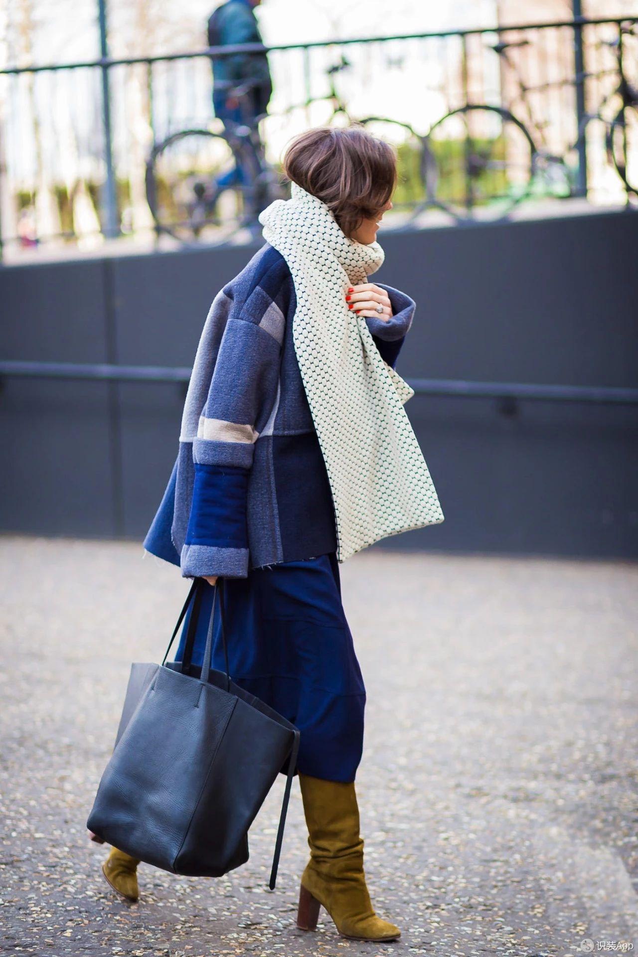 條紋披肩十分吸睛,這時(shí)候需要黑色手提包來(lái)中和一下。這波搭配想不拿滿分都不行!