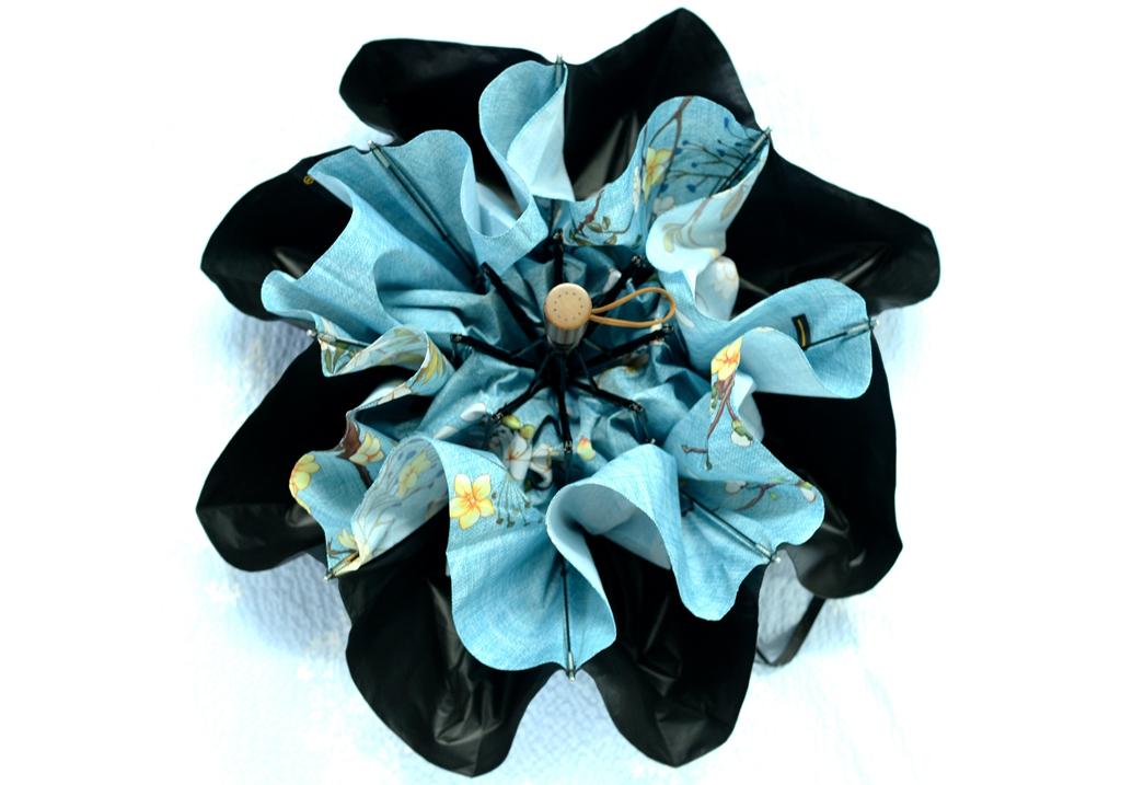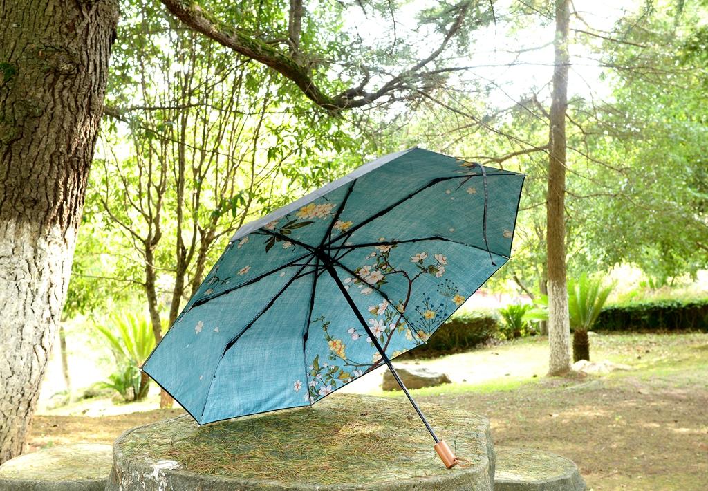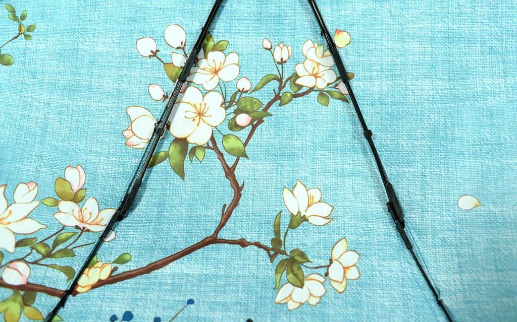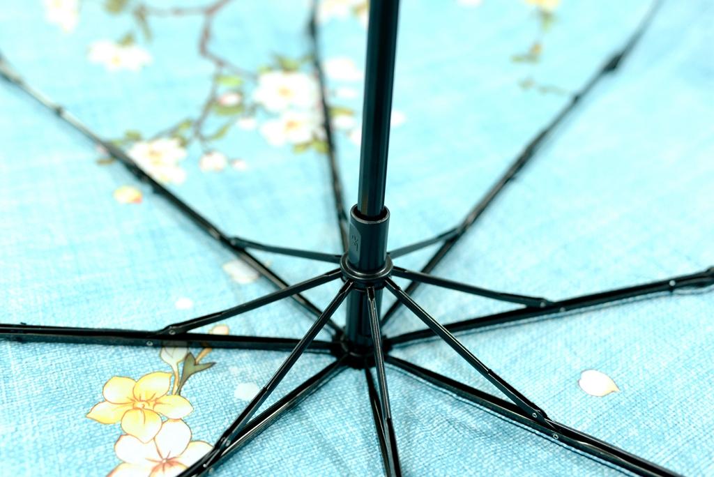 蕉下初被大家愛稱為“小黑傘”,主要因為傘面采用了全黑膠面,相對來說比較沉悶,愛美的女生會覺得不美觀,后來又逐步改進(jìn)為單色傘面、花朵傘面,現(xiàn)在終于出了頗具特色的文藝圖案。本次我評測這款喚做:依杏。聽名字就很有詩意了,藍(lán)色的底面,繪有花鳥,具有比較鮮明的特色。
