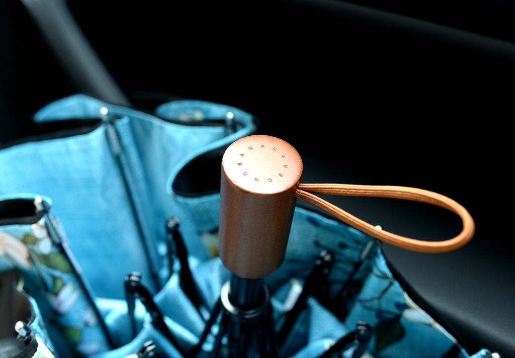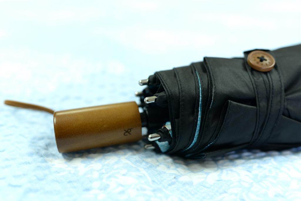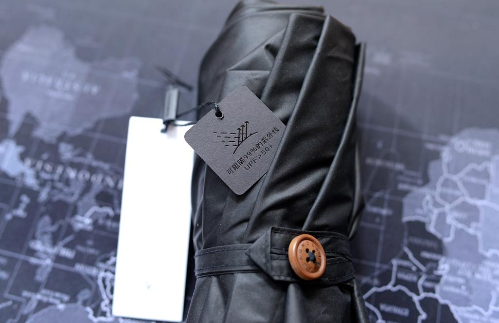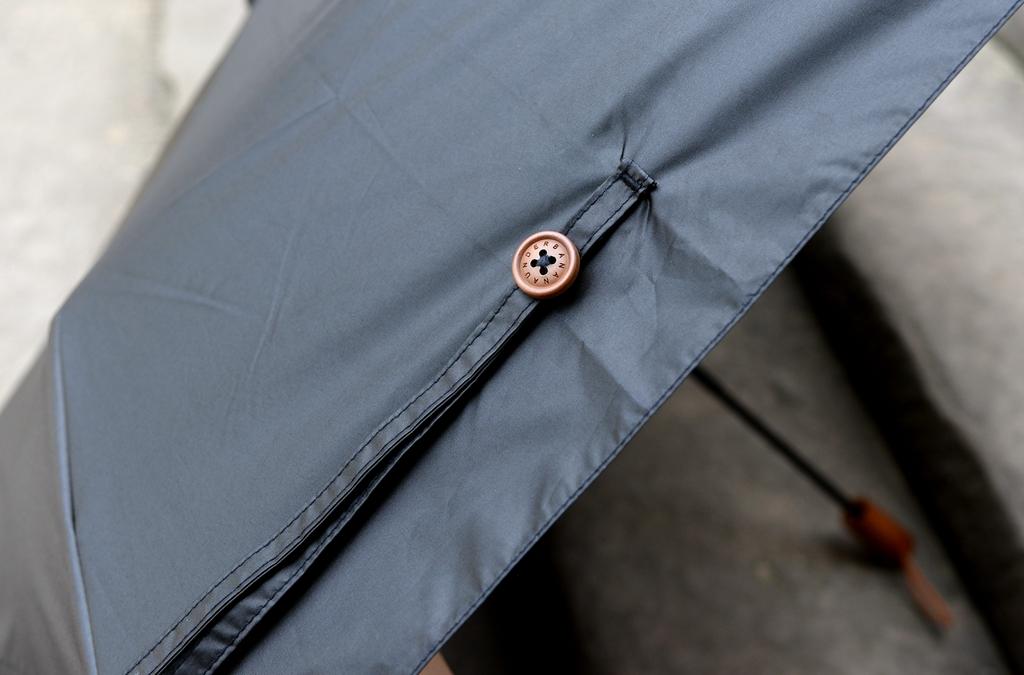 蕉下本次改進(jìn)了這一點,使用了看似更為原始的木扣。同時傘繩處不還做了藝術(shù)折角處理,感覺雖然雙層傘面比較厚,但是依然可以很方便而隨意的扣上。