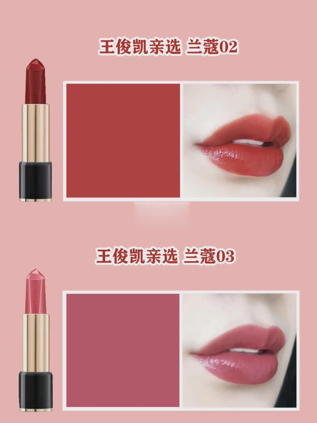 ?王俊凱親選 蘭蔻02濃郁的赤茶胡蘿卜橘色,簡直就是蘭蔻196的親姐妹,只不過更為濃郁一些,很適合黃皮,顯白提氣色,元?dú)鉂M滿。
