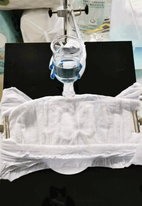 測試方法:將紙尿褲平鋪在測試臺上,底下墊一張濾紙,在紙尿褲中心放液60mL,觀察紙尿褲防側漏護圍是否能兜住尿液,防止其流出紙尿褲。