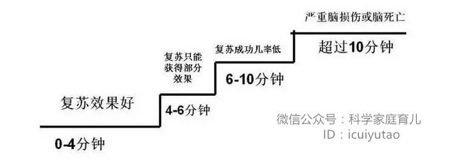 當(dāng)兒童處于危難時,為緊急的就是保持或恢復(fù)兒童的呼吸和心跳,這樣才能大限度的保持兒童的生命。在保持生命的過程中,爭分奪秒是關(guān)鍵的關(guān)鍵。因為一旦呼吸心跳停止對人體的影響與分秒相關(guān)(見下圖1)。
