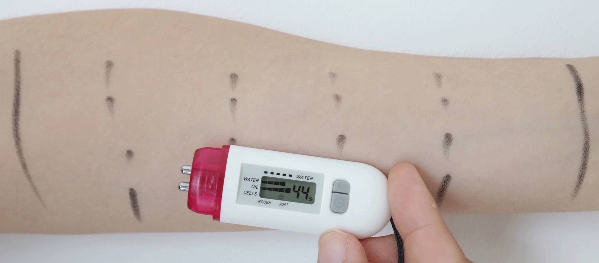 我們涂開防曬霜以后等待 15min ,用水分測試儀分別測量涂抹防曬霜前后的皮膚含水量。就像這樣~