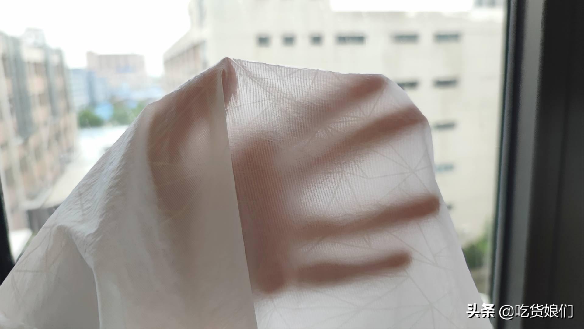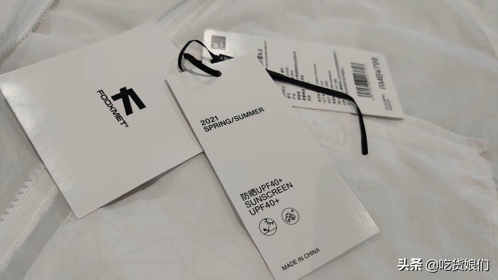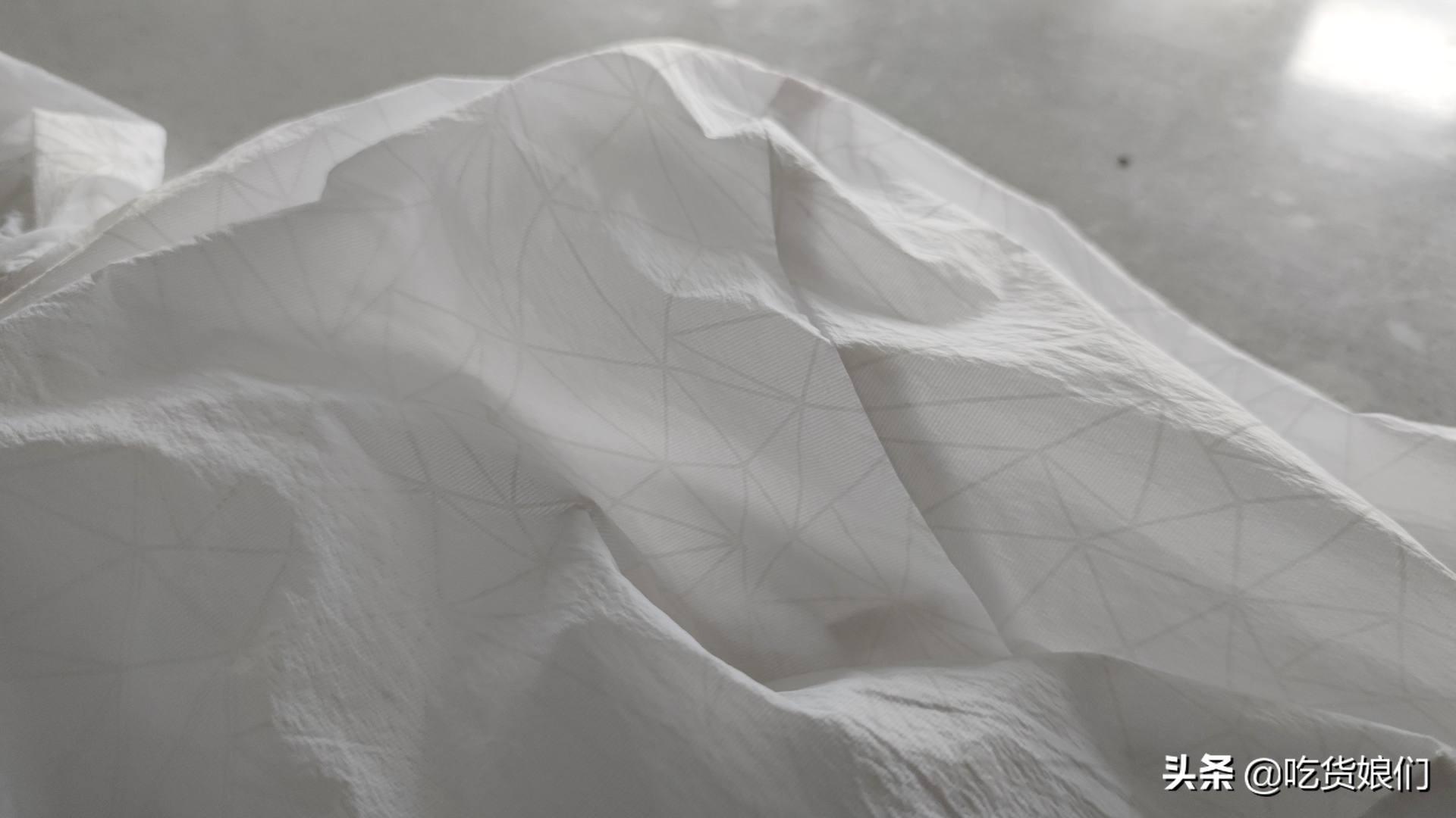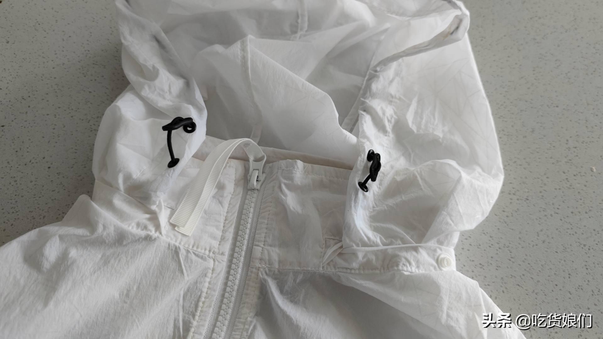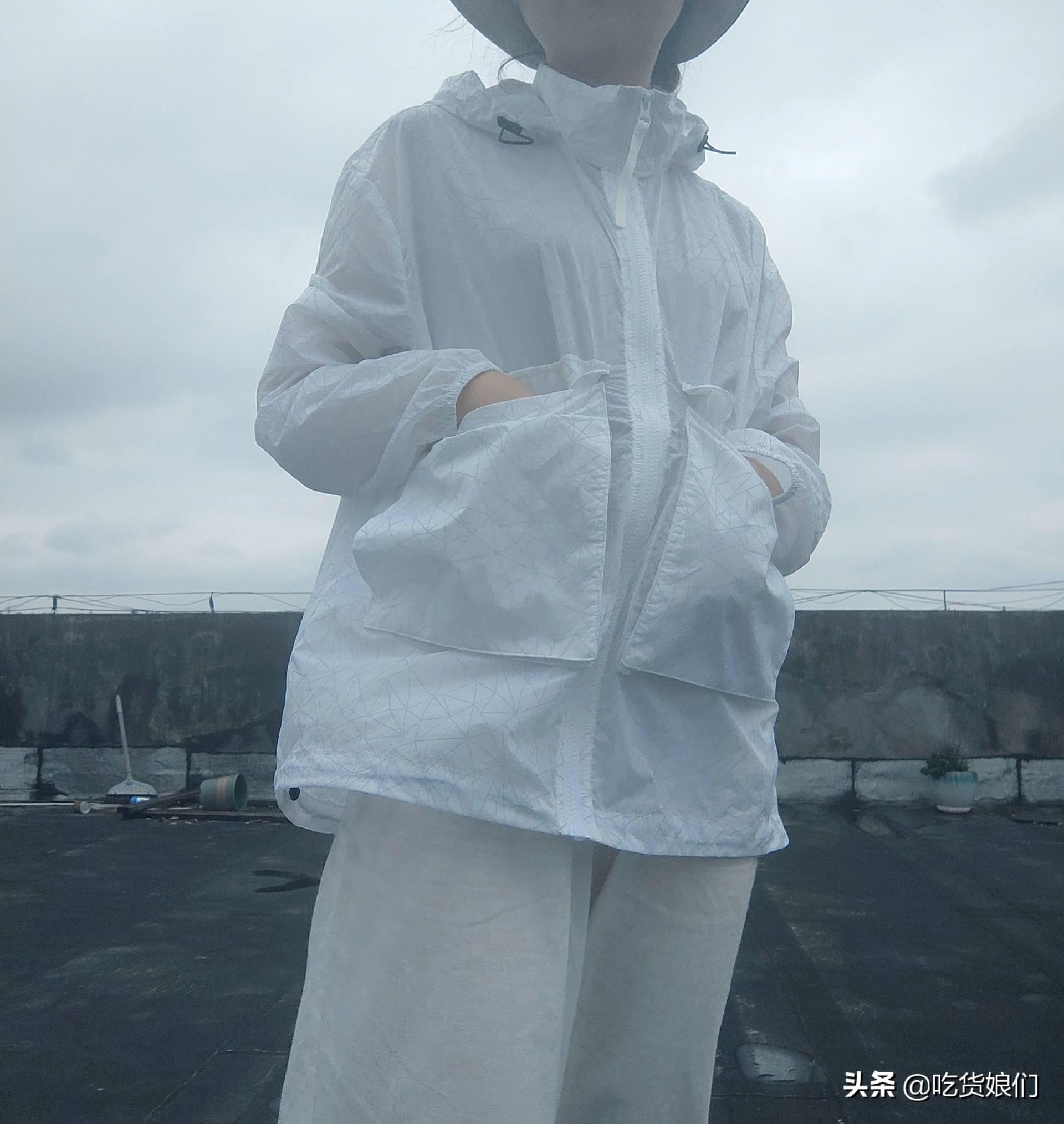 fooxmet這款防曬面料很輕,摸著比較柔軟舒適,穿上會覺得沒啥負(fù)擔(dān)。透著光,我們也能看到衣服上的紫外線顯示條紋。