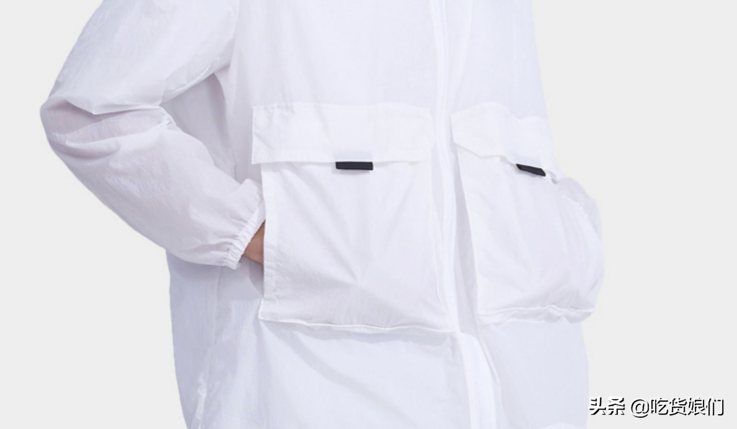 這件防曬衣主打休閑和功能,這款和西裝一樣采用了方形口袋設(shè)計。