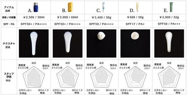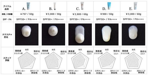 由此可見,A款碧柔 Biore Aqua Rich水活防曬凝蜜以的優(yōu)勢戰(zhàn)勝了另外四款!不浮白是指在涂抹防曬霜時不會出現(xiàn)涂抹不勻、不與皮膚相溶的白色粉末。碧柔 Biore Aqua Rich水活防曬凝蜜僅需797日元(40元),除了持妝方面稍顯欠缺,需經(jīng)常補(bǔ)充涂抹以外,在保濕、清爽度、性價比、不浮白等四方面都是相當(dāng)不錯的,怪不得一直霸占日本COSME大賞防曬排行榜的前三甲。