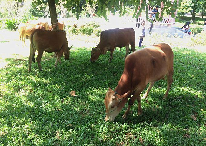 每年花季一股賞花愛好者特地而來,除了賞花之余,沒想到還有試驗牛牛,牛群一字排開的畫面好可愛!