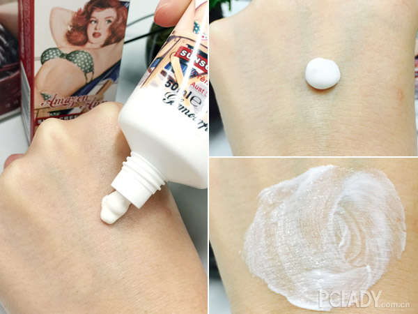 這款防曬霜的質(zhì)地并不會(huì)像普通防曬產(chǎn)品那樣厚重,輕透的乳霜知道,水潤(rùn)易涂抹且不黏膩,能夠迅速被肌膚吸收;涂在肌膚上后也不會(huì)泛白,害怕防曬產(chǎn)品質(zhì)地厚重而不敢也不想涂的妹子可以考慮入手哦。