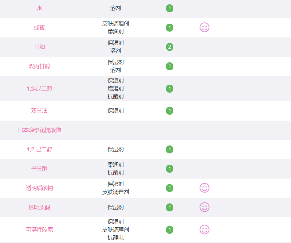 這款化妝保濕水含有維生素C、透明質(zhì)酸、甘油、甘氨酸等能夠很好的幫助皮膚保濕,尤其在成分表當(dāng)中,蜂蜜的成分含量還是比較高的,從成分上來看還是很有誠意。